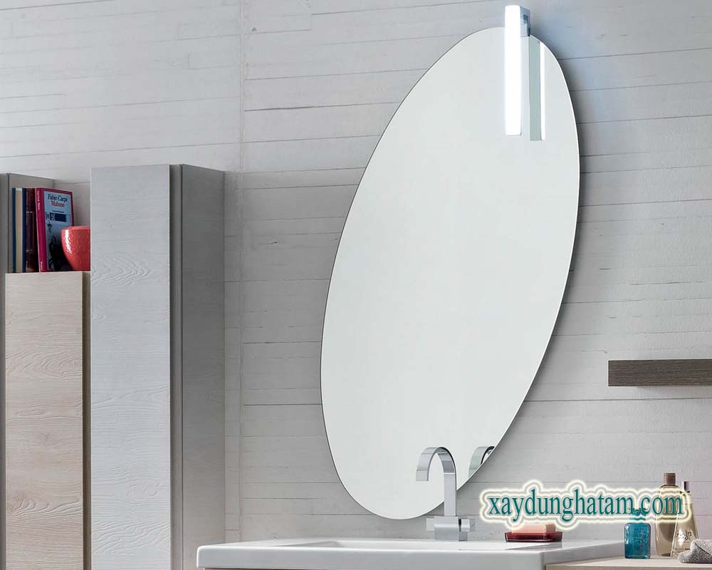 Gương nhà tắm elip: độc đáo , phá cách .thể hiện sự sáng tạo của chủ nhà.
