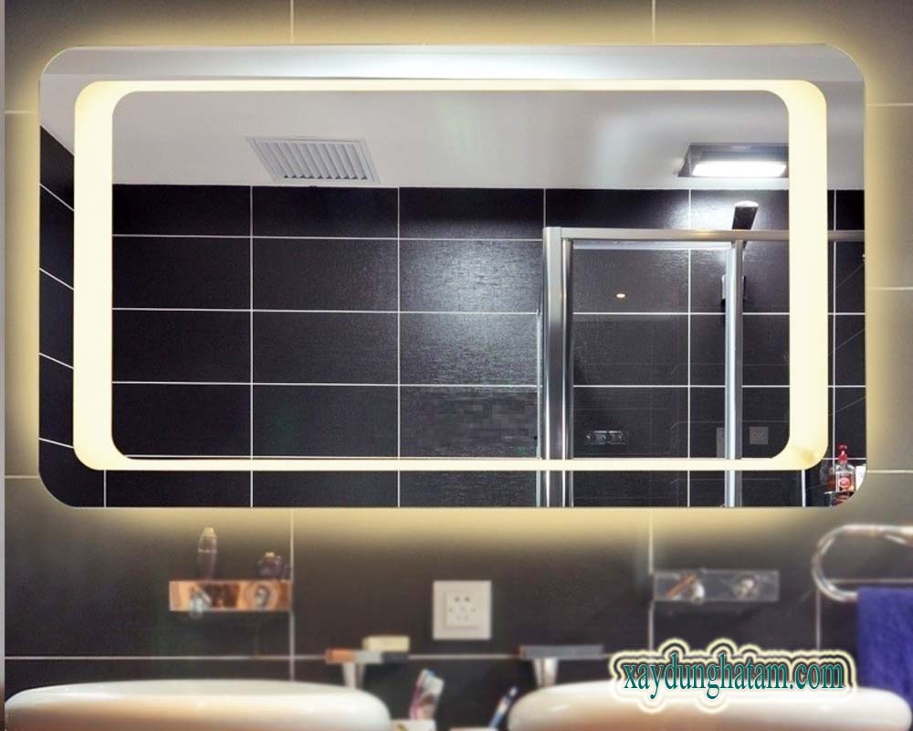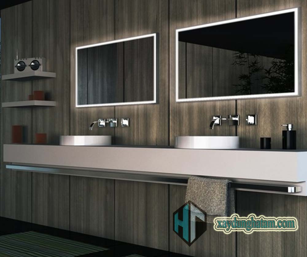 Gương nhà tắm đèn LED: Có 2 kiểu lắp đèn led ( led âm và led dương) vào gương làm nổi bật không gian nhà tắm nhà bạn.