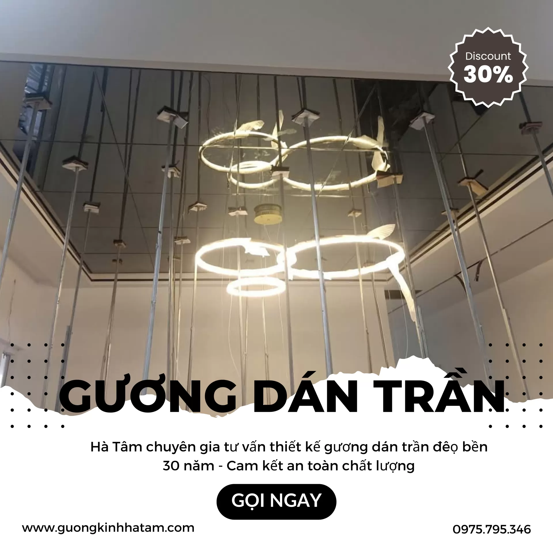 - Gương dán trần : Nhân 2 diện tích tạo hiệu ứng