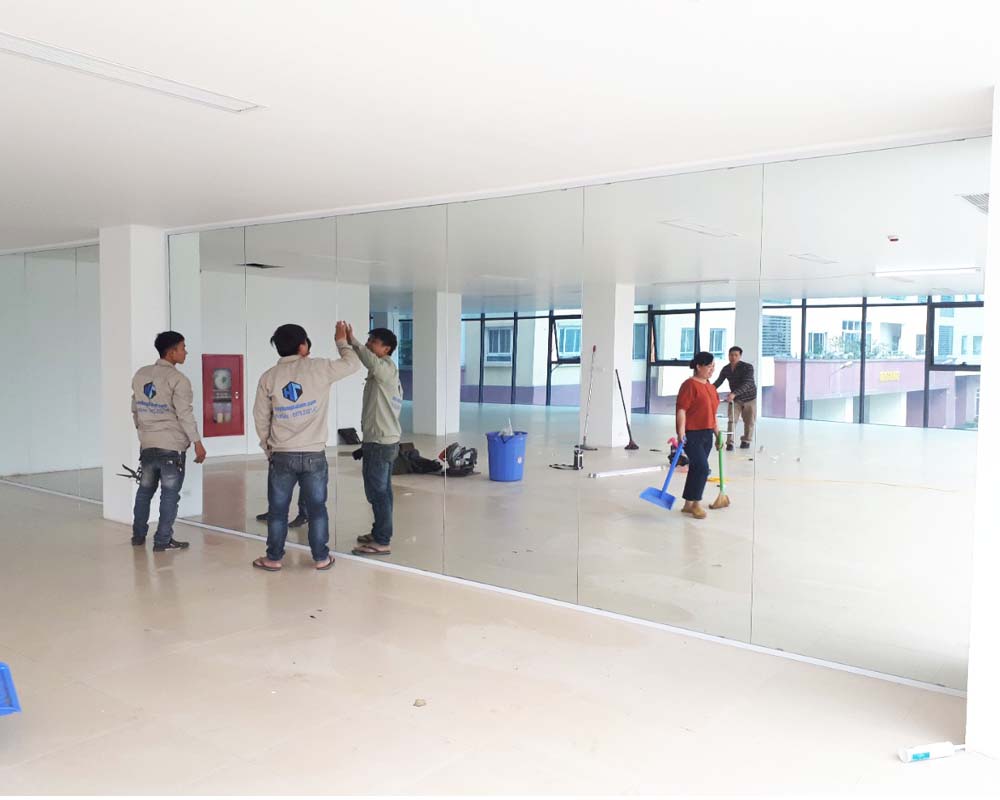 * Gương cho phòng tập múa các trường mầm non, tiêu học. gương được bảo vệ tốt nhất chông rung chống vỡ bằng vật tư lắp đặt được nhập khẩu từ nước ngoài.