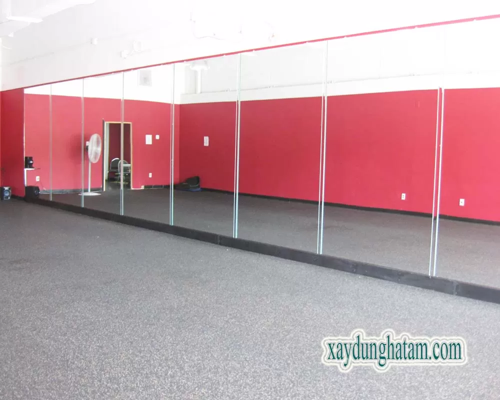 2.Gương lắp phòng tập thường dùng loại gương Việt nhật hoặc Gương Bỉ, gương việt nhật giá thành thấp hơn Gương Bỉ , tuy nhiên gương Bỉ lại có khả năng chống ố mốc và chịu được nhiệt độ cao hơn.