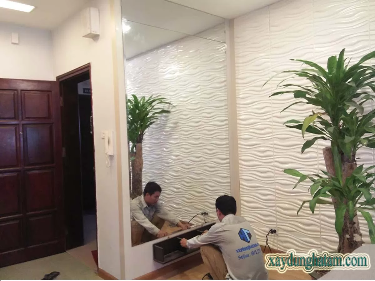 Gương phòng tập mài xiết cạnh đẹp ghép tại phòng khách- điểm nhấn nổi bật