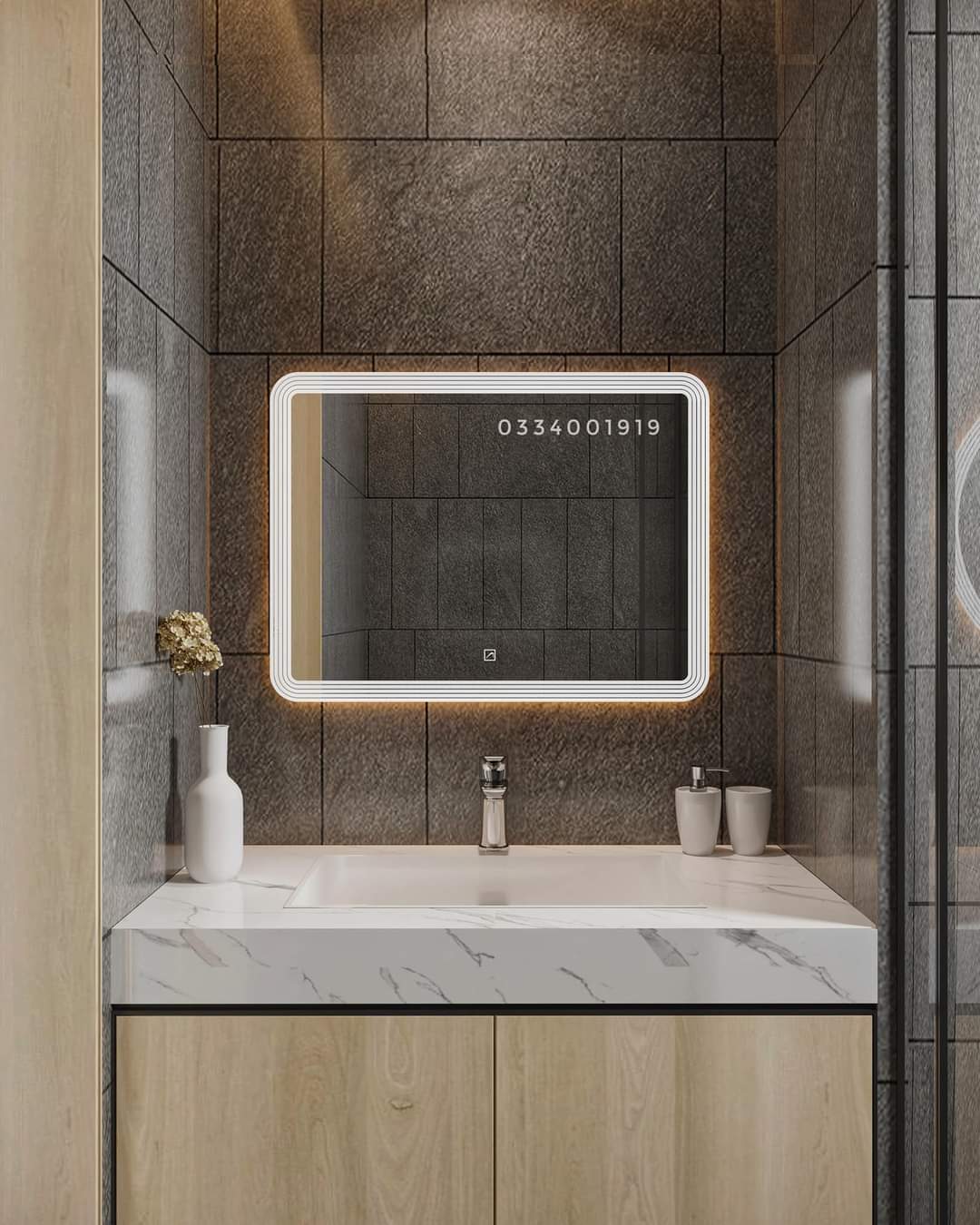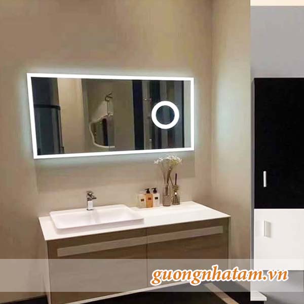Gương led nhà tắm màu trắng kết hợp gương màu trà