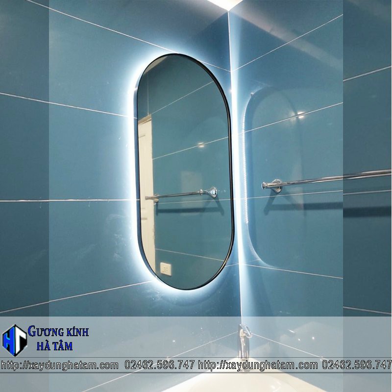 Gương nhà tắm led kết hợp gương màu đen do Hà Tâm thiết kế sáng tạo.