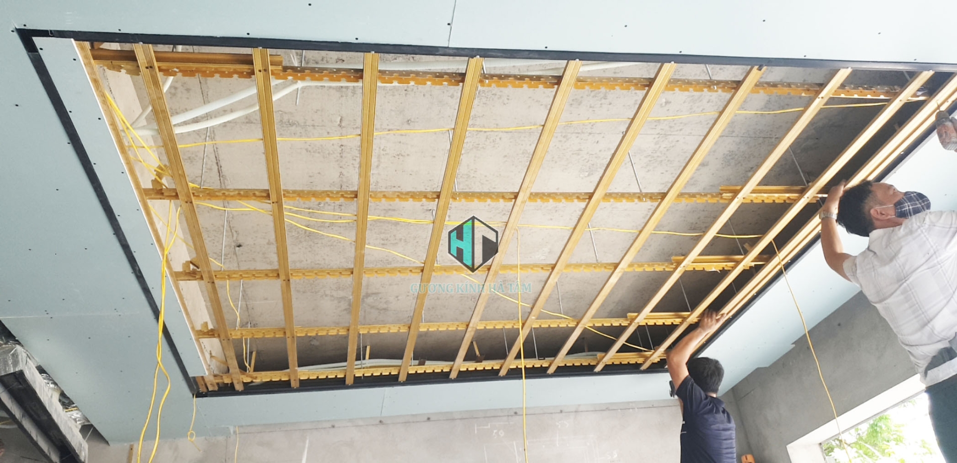 1: Xương và ti treo thạch cao: khuyến cáo sử dụng xương vĩnh tường loại dày tạo độ cứng cho trần