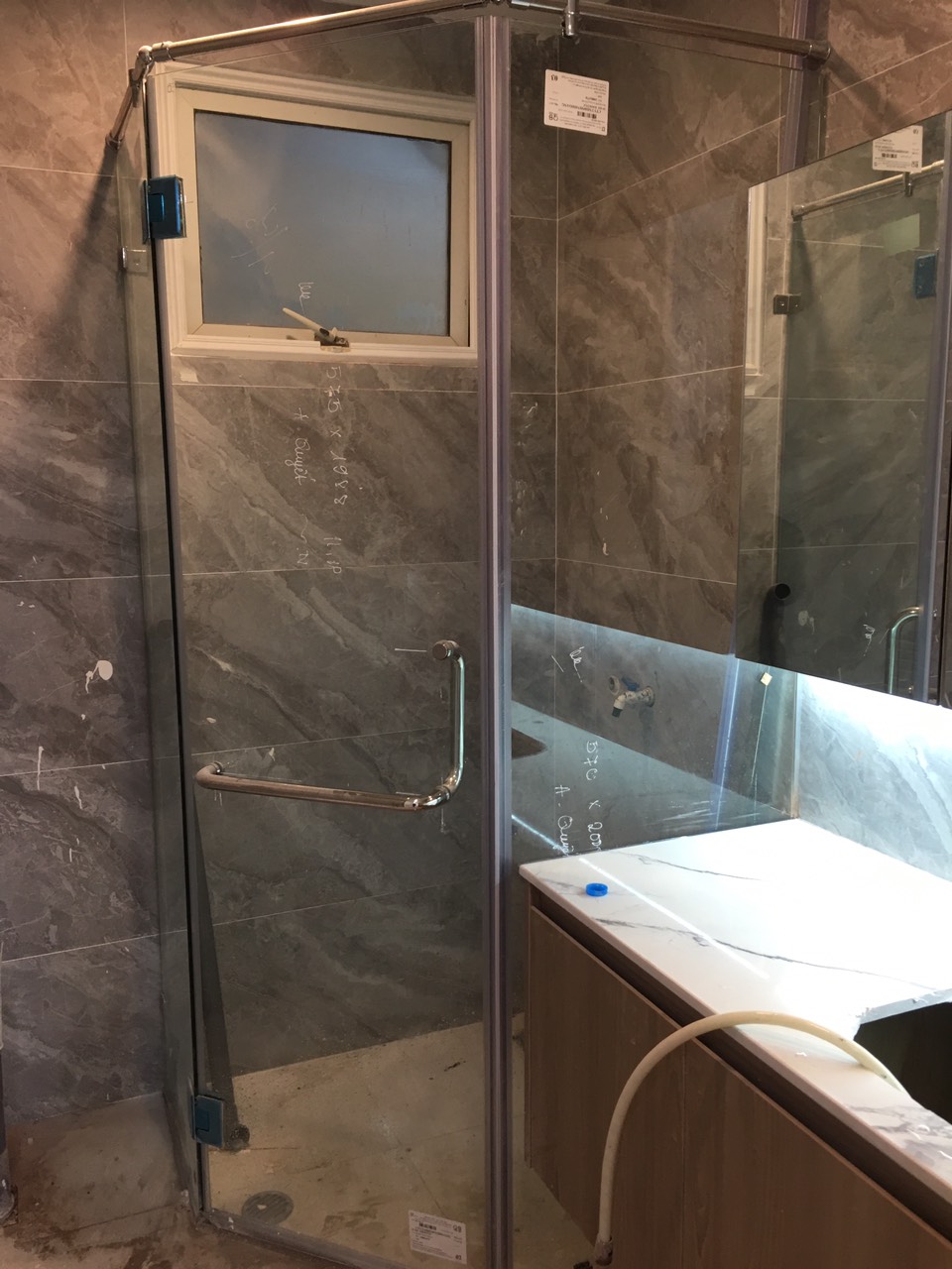 Cắt kính và thi công kính cường lực nhà tắm , vách tắm kính cửa mở trượt