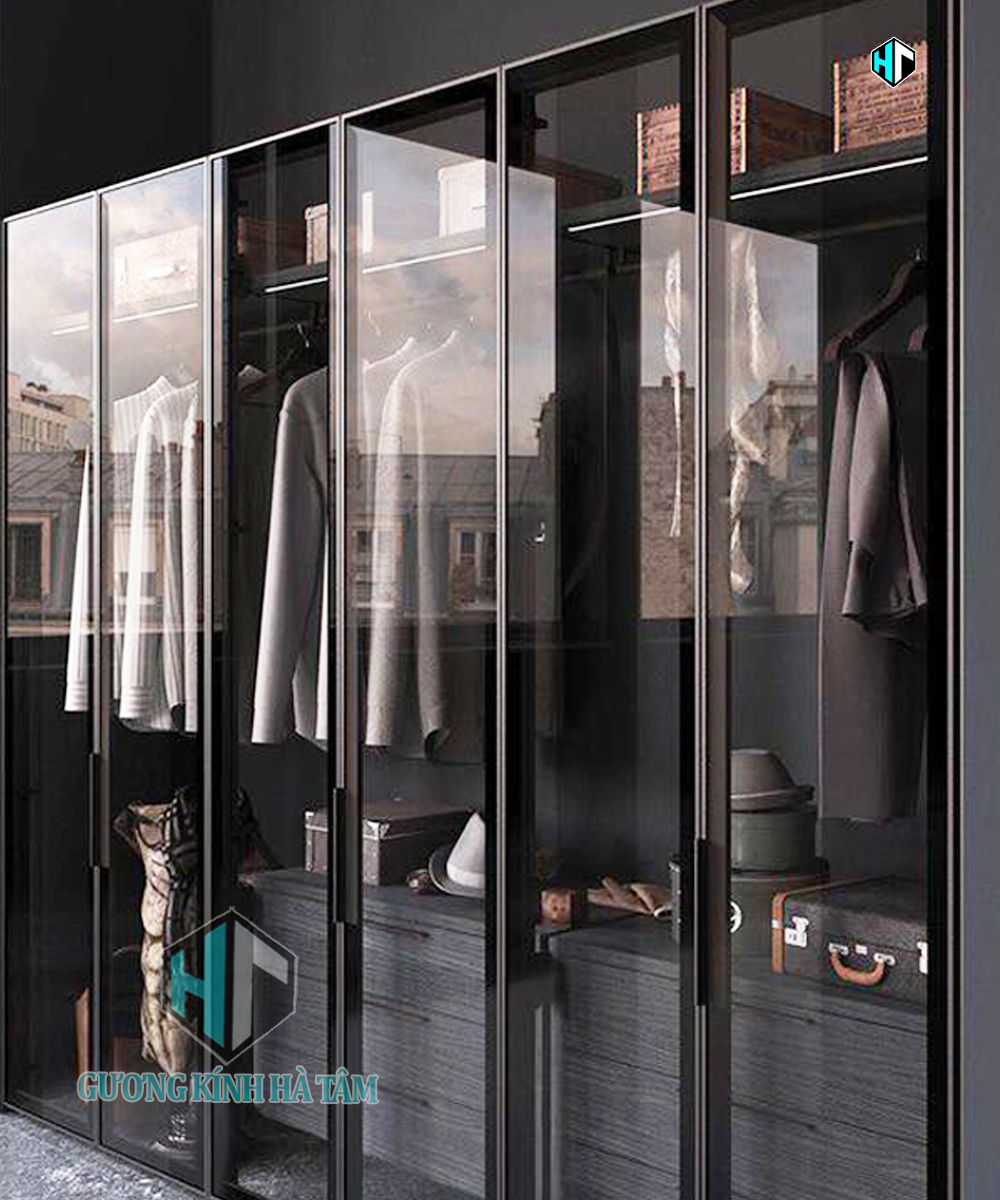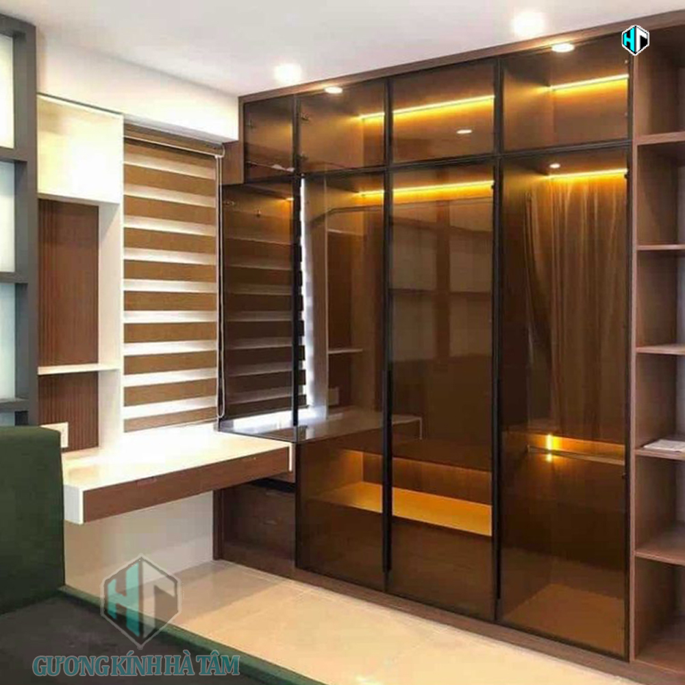 Dịch vụ cắt kính màu trà, kính màu đen dùng cho nội thất khách hàng có thể lấy tại xưởng hoặc xưởng Hà Tâm hỗ trợ lắp đặt.