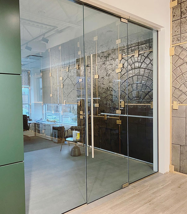 Cắt kính cường lực và thi công cửa đi chính cửa ngăn phòng làm việc