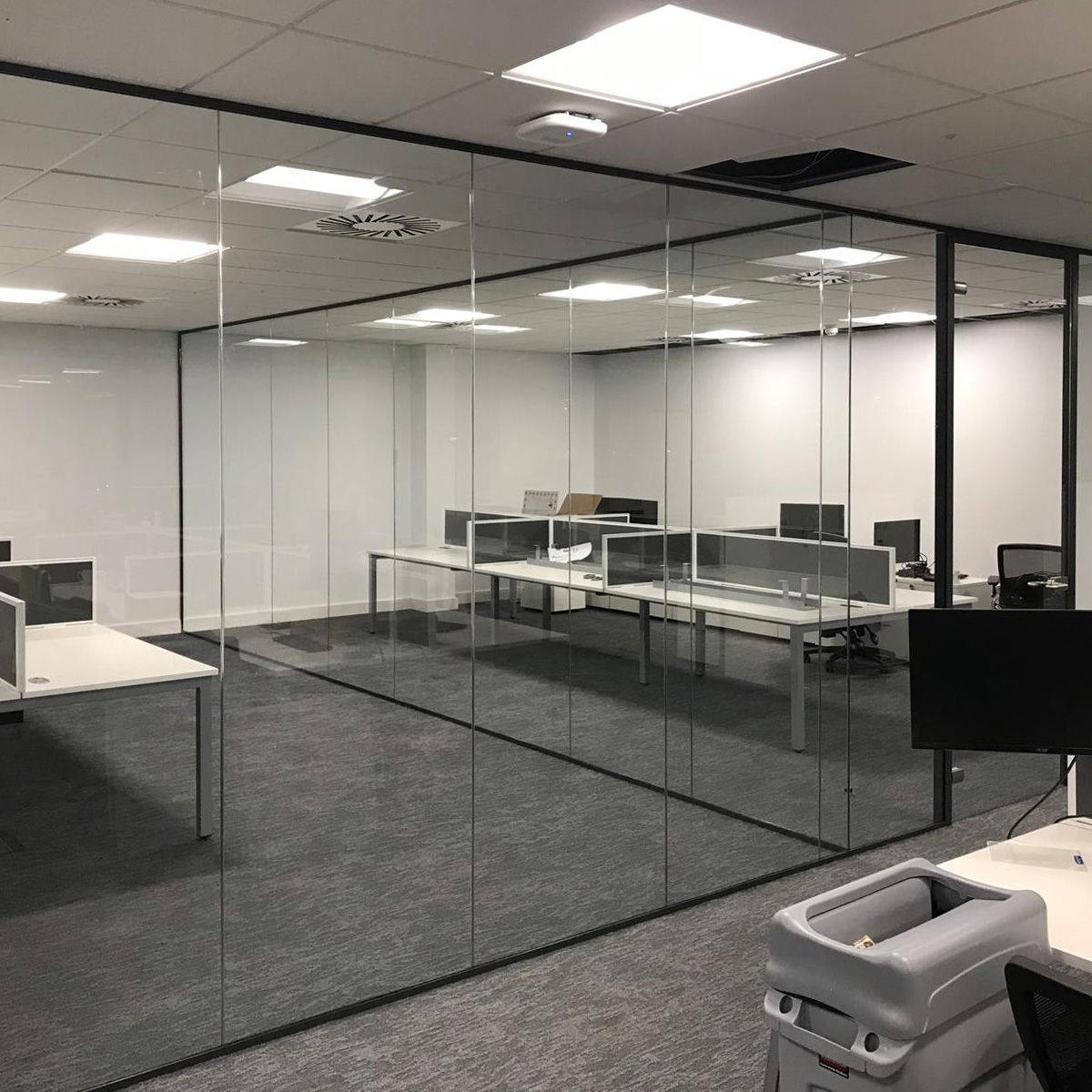 Thi công lắp đặt kính cường lực +thi cdán decal ngăn phòng làm việc