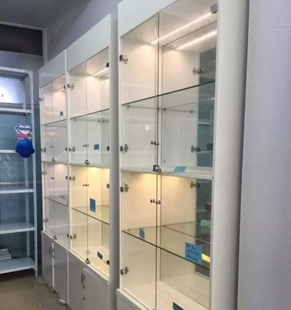 Cắt kính tủ trưng bày- tủ hàng- kính tủ shop thời trang- tư vấn thiết kế miễn phí