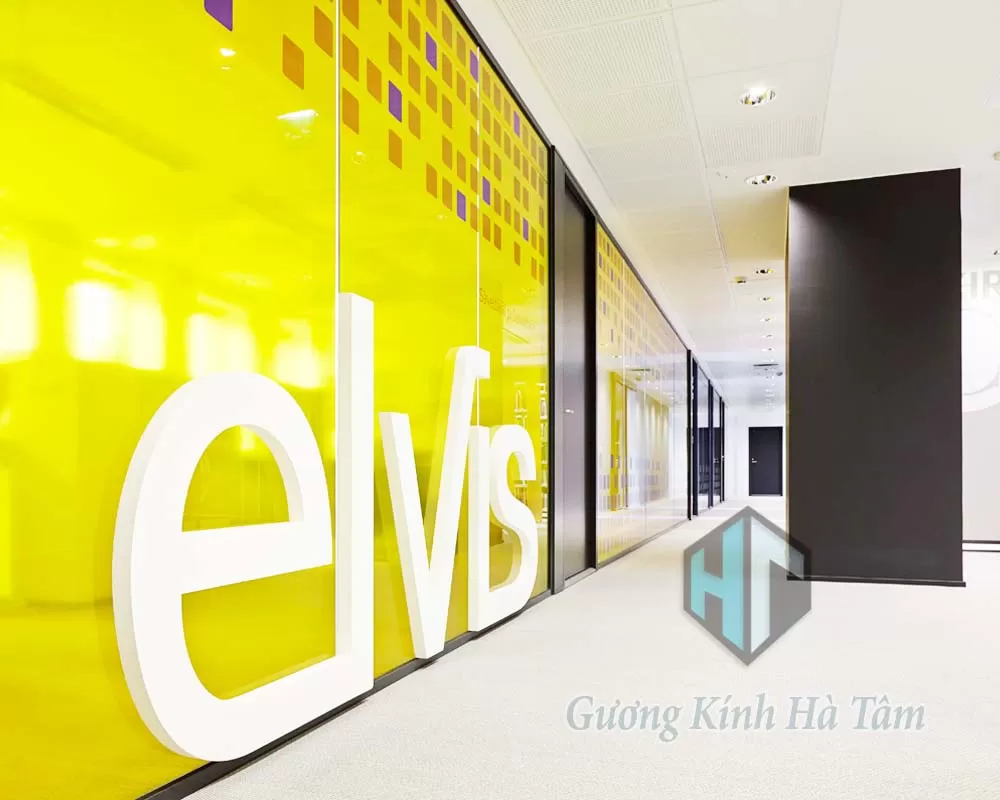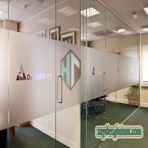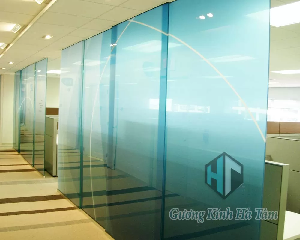 Vách kính văn phòng - sơn màu theo yêu cầu do Hà Tâm Glass thực hiện.