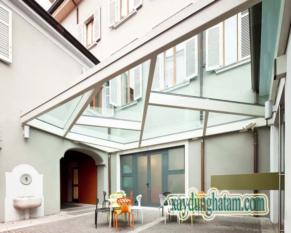 Cắt kính mái sảnh ban công+ sắt inox gia cố - thi công trọn gói.