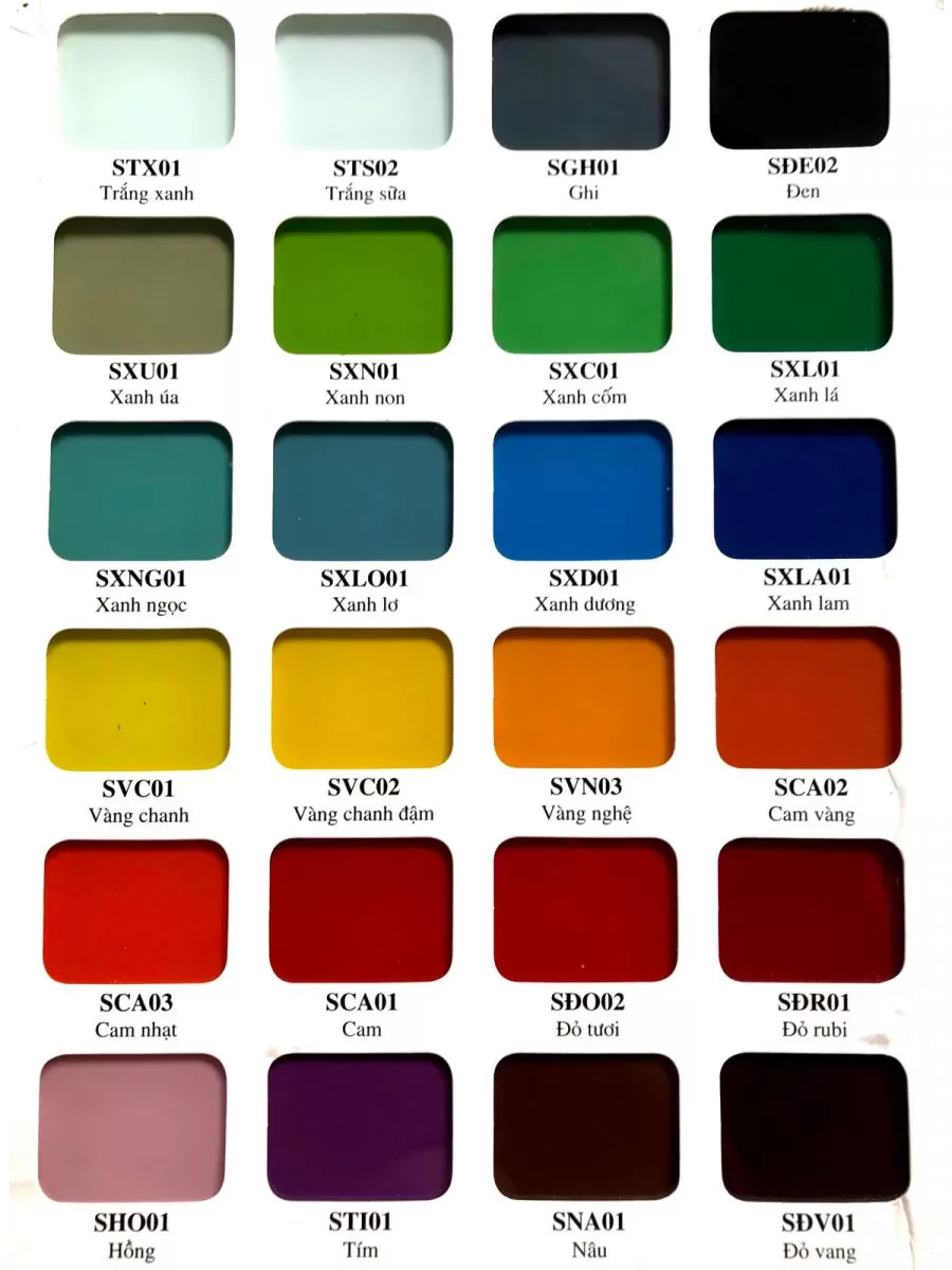 Bảng màu kính sơn theo yêu cầu- còn rất nhiều màu theo yêu cầu khách hàng
