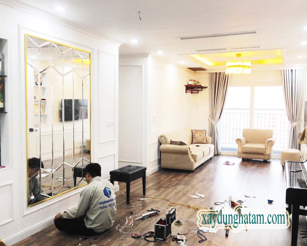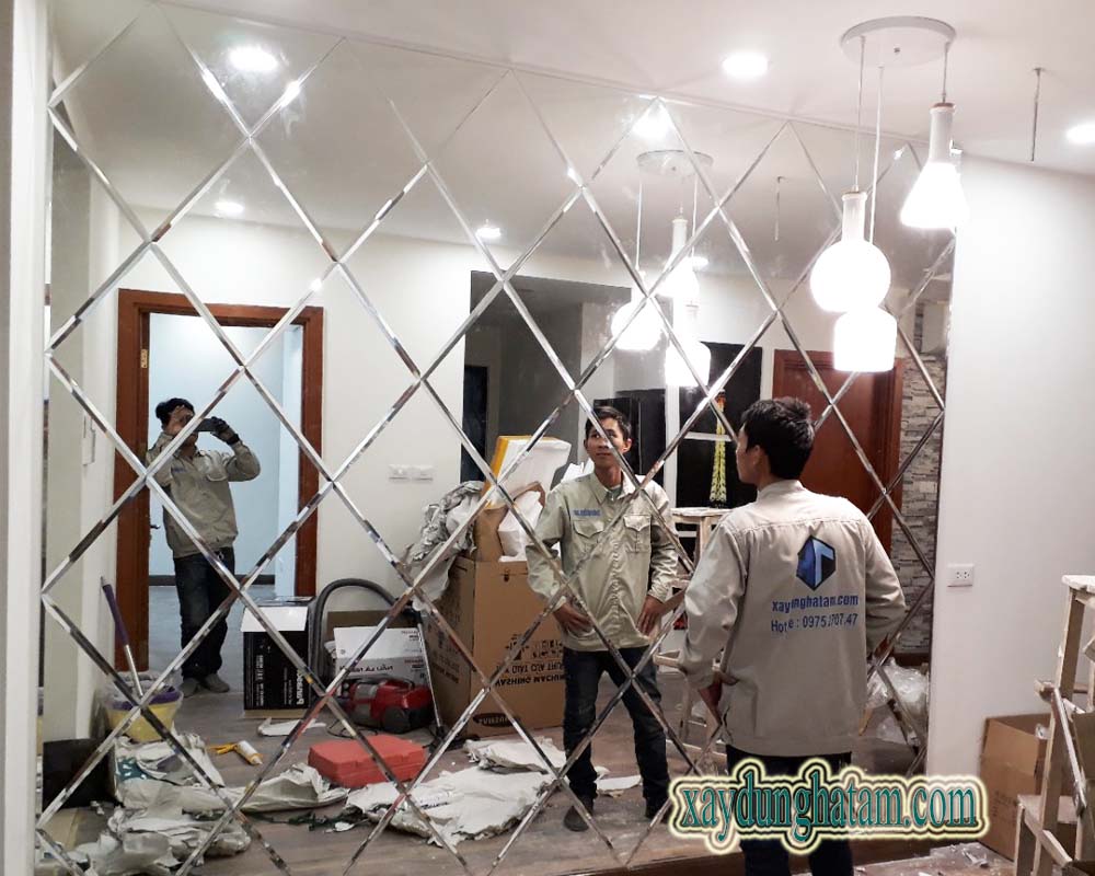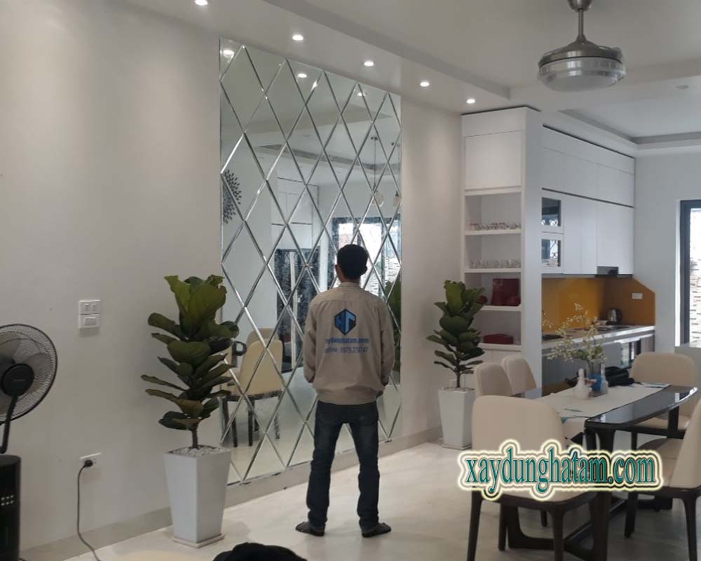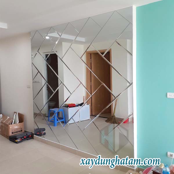 Hình ảnh gương Bỉ màu trà được mài vát cạnh ghép trang trí phòng khách
