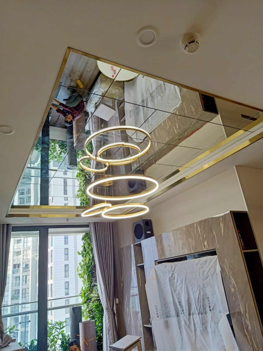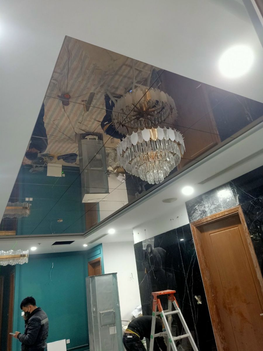 Gương Trang Trí Dán Trần gương dán trần guong dan tran đòi hỏi thợ phải có trình độ kỹ thuật cao, tay nghề thật khéo léo để sản phẩm được giữ cố định trên trần nhà vừa phải đảm bảo thẩm mỹ, nhưng cũng phải an toàn.