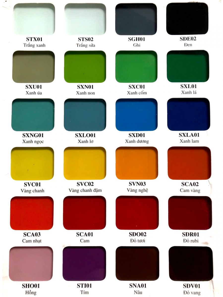 Bảng màu kính bếp - có đa dạng màu - các màu như màu đơn thuần- kính màu kim sa- kính màu nhũ- kính màu giả đá- kính màu 3D.