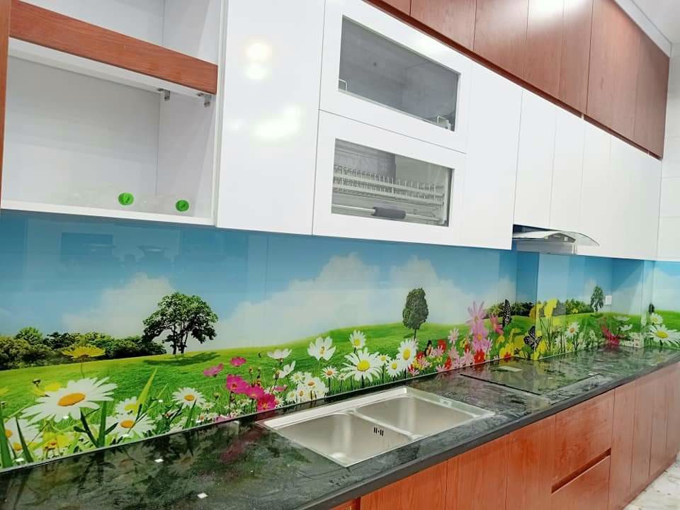 Hình ảnh kính ốp bếp sơn 3D cao cấp- Công nghệ sơn UV mới nhất hiện nay kính chống bong tróc phai màu- phôi kính sử dụng kính Việt Nhật nhà máy.