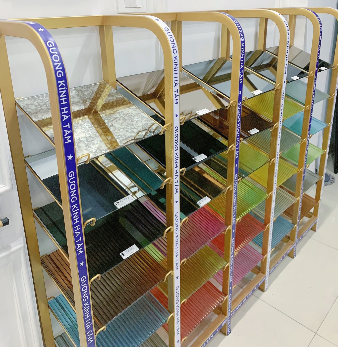 Hình ảnh các sản phẩm kính sơn+ kính sọc đầy đủ màu sắc tại showroom Hà Tâm