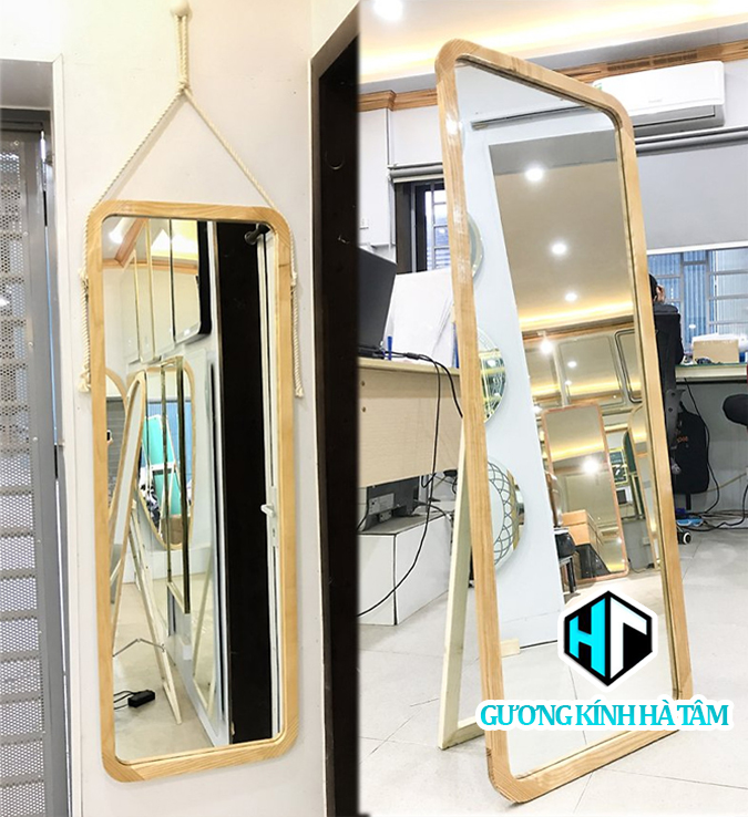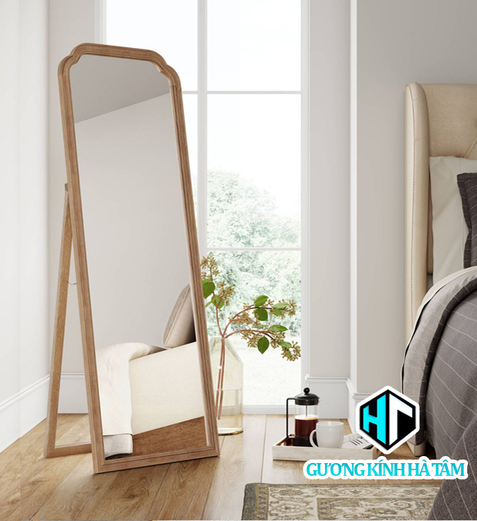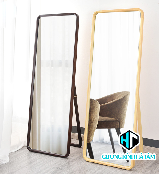 Gương soi toàn thân khung gỗ cao cấp bo góc có chân đứng
